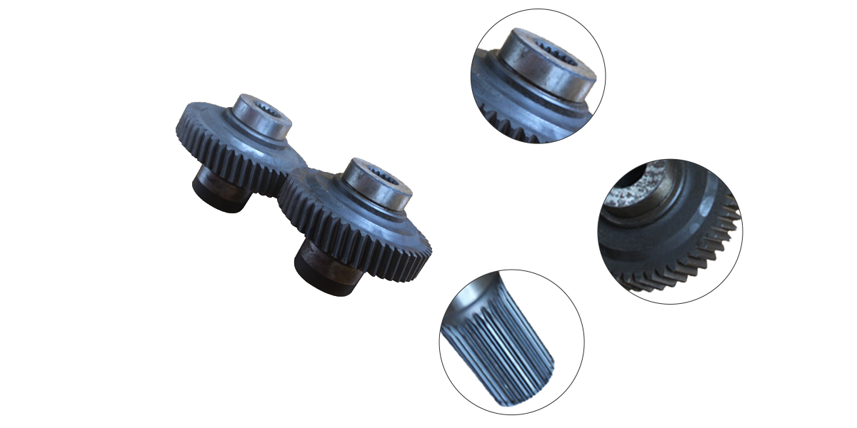 S1700 transfer case gear,The gear pump has a pair of intermeshing gears. The gear (driving wheel) is fixed on the driving shaft. One end of the shaft of the gear pump extends out of the casing and is driven by the prime mover. The other gear (driven wheel) of the gear pump is mounted on the other shaft. When the gear of the gear pump rotates, the liquid enters the suction space along the oil suction pipe, is squeezed by the two gears along the upper and lower shell walls to meet the discharge space (before the teeth mesh with the teeth), and then enters the pressure oil pipe for discharge. RP601 paver transfer gear.RP75 paver transfer gear.RP452L paver doubel gear pump.